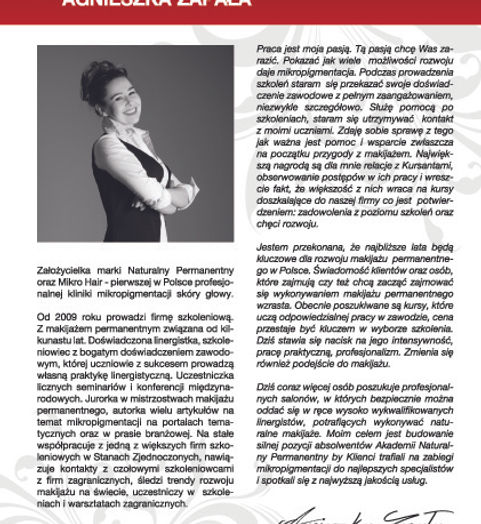 w 2010 roku Organizator Pierwszego Sympozjum o tematyce Mikropigmentacji medycznej i Makijażu permanentnego w Polsce, którego mamy już V-tą edycję)